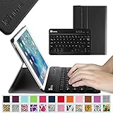 This case comes with a detachable bluetooth keyboard that seamlessly connects with the iPad for a quicker and more comfortable typing. A spring mechanism underneath each key ensures a tactile response with every stroke, helping you to type faster and with less error than on a touchscreen. Ultra-slim design adds maximum protection with minimal bulk (0.38 in). Find the angle in landscape mode just right for you with the adjustable stand that customizes to your personal viewing preference. All features of the iPad are accessible even with the case on. This versatile and protective case from Fintie features a removable keyboard that lets you switch be