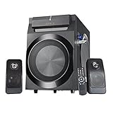 Not just another 2.1 speaker. This monster is the flag ship of Sykik Bluetooth Powered speaker systems. With powerful 210W RMS guaranties to shake your world. Giant 8" active sub, with a pair of 8" passive sub woofers produces excellent and deep base. You can adjust the bass to your favorite level. Connects easily via Bluetooth to your Smartphone or other devices. Includes remote control, SD, USB and FM radio. Subwoofer: H:17", D: 19", W: 11". sattelites: H:8", D:3.5", W:3.5".