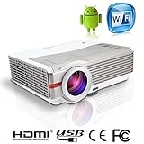 EUG X99+A 4200 Lumen LCD LED Android Wireless HD Home Theater Projector 1080p 720p HDMI USB VGA SD TV AV Audio Multimedia Wifi Projector 3D for Movie Gaming Party Outdoor Camp Entertainment Portable
